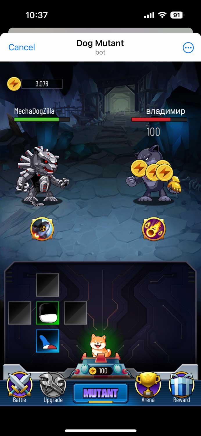Dog Mutant is a PvP game. That mean you will encounter real players on battlefield No "boss", no "mob". Only real Telegram players versus real Telegram players.